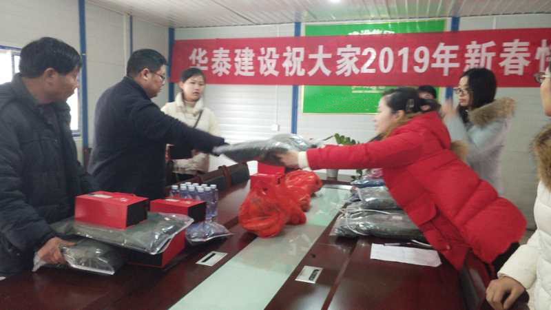 2019年1月19日,華泰建設(shè)工程有限公司積極組織人員對(duì)各項(xiàng)目部開(kāi)展走訪慰問(wèn),并送去新年問(wèn)候。各后盾部門也積極發(fā)揮“娘家人”的作用,帶上慰問(wèn)品看望項(xiàng)目工作人員,鼓勵(lì)他們?cè)谛碌囊荒昀锊煌跣?,砥礪前行,再造輝煌。