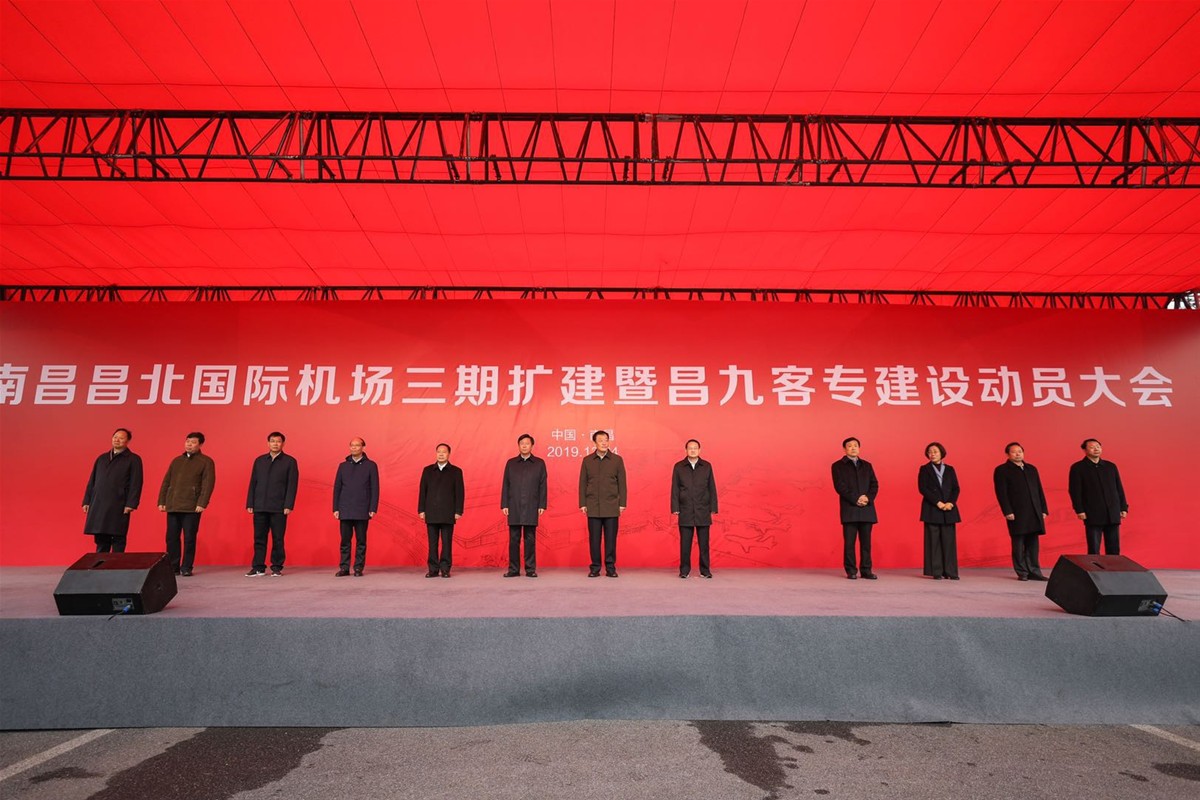 2019年12月24日,我司承建的昌北國際機場三期擴建項目暨昌九客專建設前期工程在昌北機場隆重召開動員大會,大會由偉明常務副省長主持,劉奇書記、煉紅省長蒞臨大會并致辭,美根書記、力平秘書長、曉軍、忠瓊副省長等領導一同出席大會。隆隆的飛機聲和著慷慨的陳詞為項目開工慶賀,大會在陣陣粗獷的汽笛聲和樁機聲中落下帷幕,我們定會牢記安全生產的使命時刻警惕危險,秉承魯班精神建設精品工程,文明施工樹立建筑業(yè)新標桿。