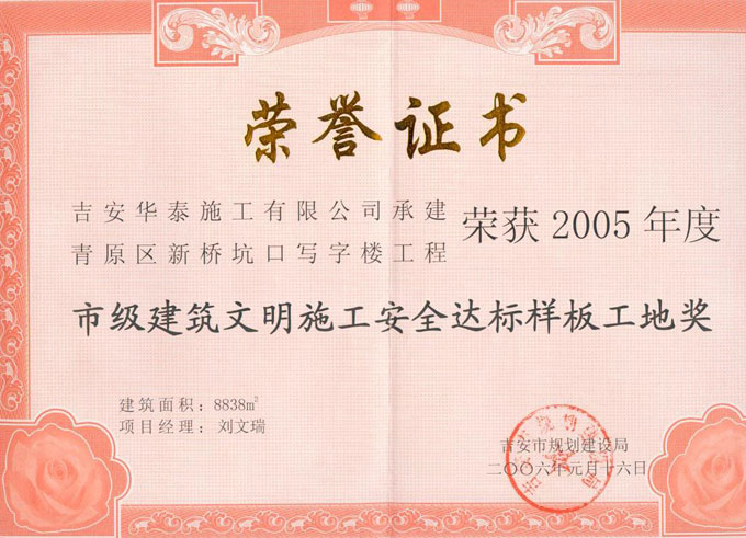 青原區(qū)坑口寫字樓榮獲市級安全達標(biāo)樣板工地獎