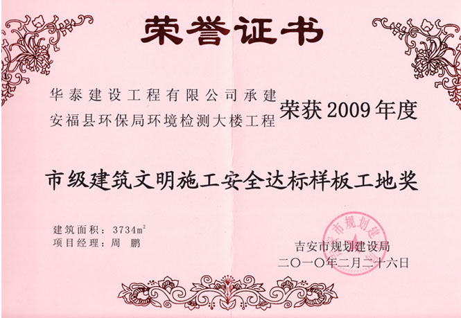安福環(huán)保局環(huán)境檢測大樓榮獲2009年市建建筑文明工地獎