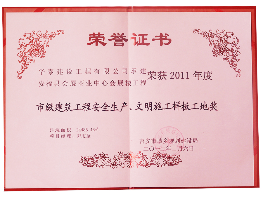 安福會展商業(yè)中心榮獲2011年度江西省建筑施工安全文明工地獎