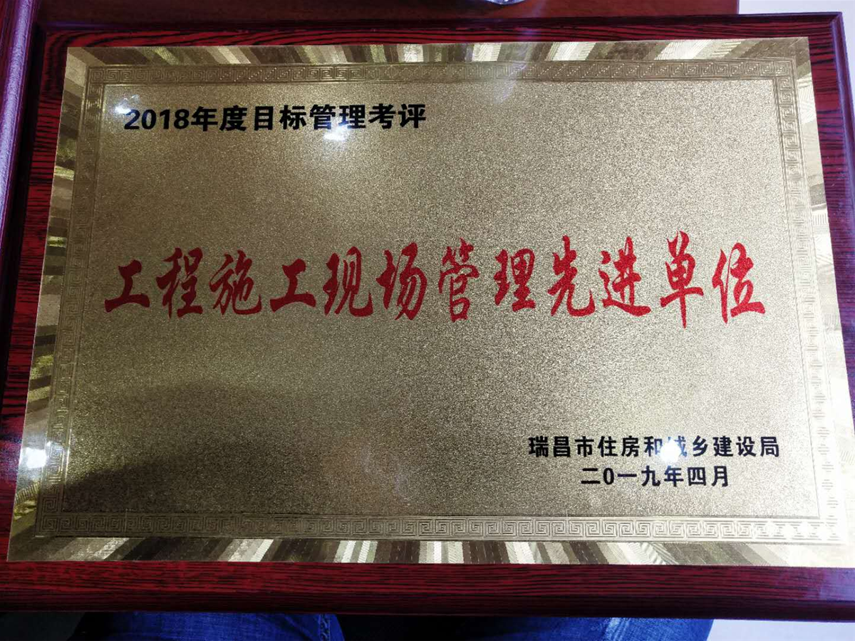 榮獲2018年度瑞昌市工程施工現(xiàn)場管理先進單位